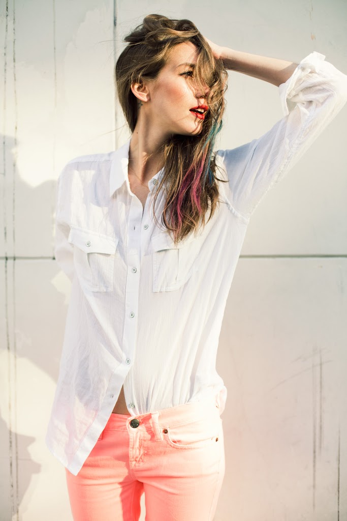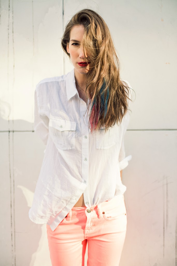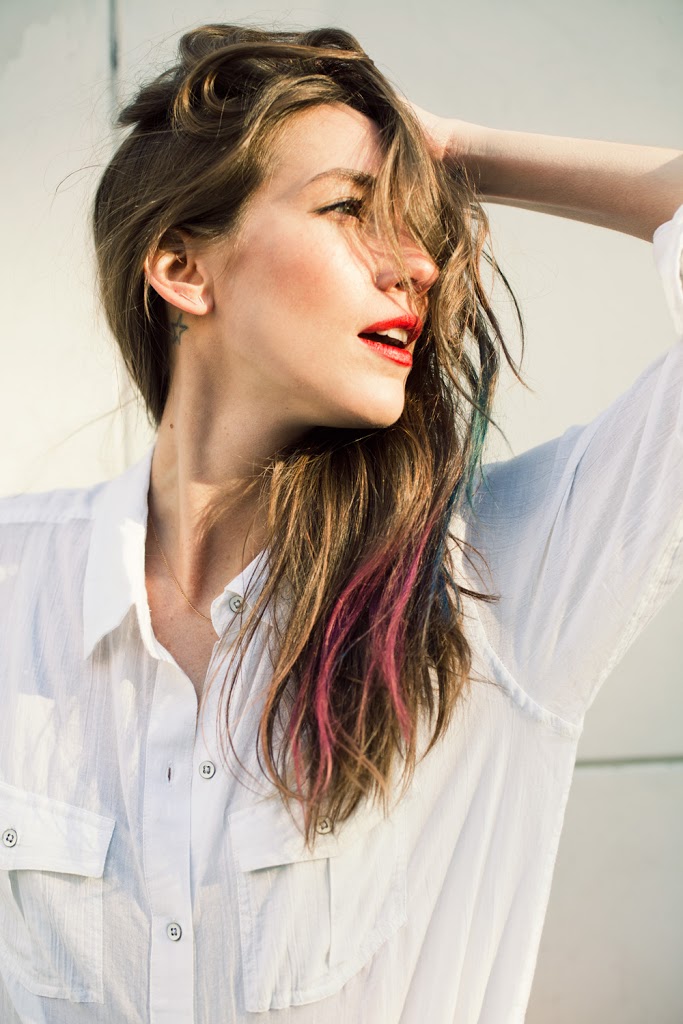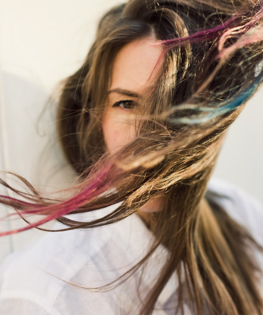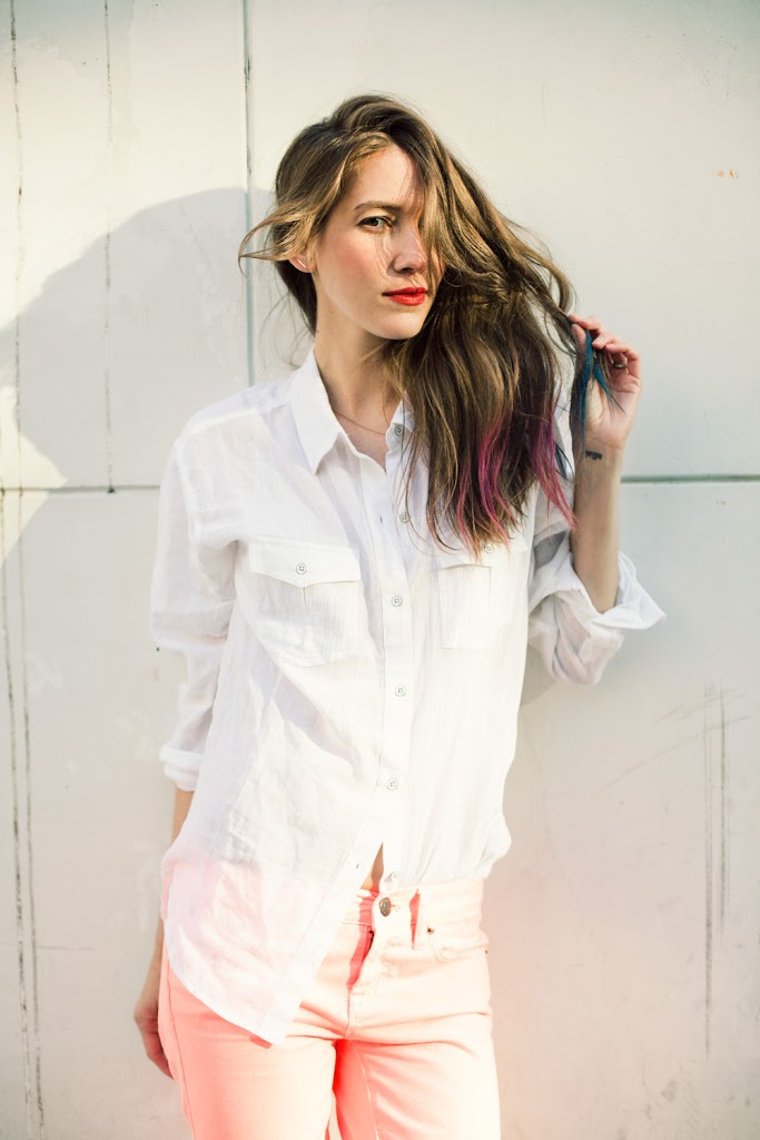 Today I’m excited to share another hair tutorial! My genius friend Caroline used chalk (yes, plain old chalk) to color the ends of her hair like a rainbow, and you could also do ombre or just your favorite color. Don’t you love this sexy rocker look? Here’s how to do it…Here are Caroline’s steps, and the wonderful Jamie Beck took photos:Dying hair crazy colors is a trend that’s been going strong for a while now, but what do you do if you want to have some fun, and don’t want to commit to a semi-permanent dye? Here’s your answer! Chalk pastels are my go-to when I want to add some fun into my hair.