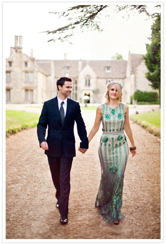 (Grey dress photos by Harpers Bazaar Australia, via The Senses Five; gold dress photo by Love Katie and Sarah; first green dress photos by Caught the Light, via 100LayerCake; second green dress photos by Susan Dean, via Green Wedding Shoes; orange dress photos by Christine Pobke, via Green Wedding Shoes; blue dress photos by Dominique Bader; first pink dress photos by Jonas Peterson, via OnceWed; second pink dress photos by Max Dworkin, via 100LayerCake; third pink dress photos by Erica Camille; first black wedding dress photos by Charlotte Jenks Lewis, via OnceWed; second black dress photos by Jose Villa, via OnceWed; polka-dot wedding dress photos by Bayly & Moore, see the full wedding here)