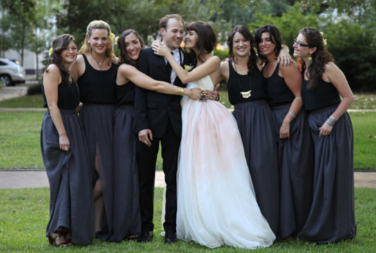 (Grey dress photos by Harpers Bazaar Australia, via The Senses Five; gold dress photo by Love Katie and Sarah; first green dress photos by Caught the Light, via 100LayerCake; second green dress photos by Susan Dean, via Green Wedding Shoes; orange dress photos by Christine Pobke, via Green Wedding Shoes; blue dress photos by Dominique Bader; first pink dress photos by Jonas Peterson, via OnceWed; second pink dress photos by Max Dworkin, via 100LayerCake; third pink dress photos by Erica Camille; first black wedding dress photos by Charlotte Jenks Lewis, via OnceWed; second black dress photos by Jose Villa, via OnceWed; polka-dot wedding dress photos by Bayly & Moore, see the full wedding here)