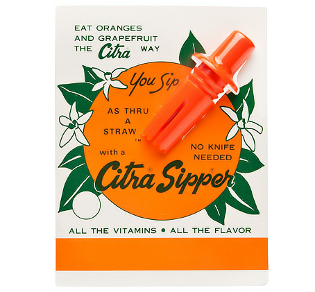 Have you ever seen a Citra Sipper? You just stick it into an orange or grapefruit and drink! What a rad idea. Do you think it really works? (And the company is old-school: It was launched at the 1933 World’s Fair by the current owner’s grandfather.)