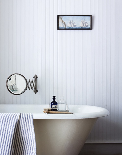 (Striped dress photo by Stockholm Street Style; bathroom photo by Seth)