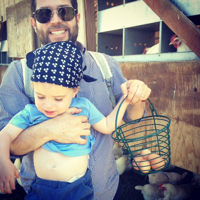 Toby reached into the chicken coop all by himself and grabbed five eggs total (only breaking one).