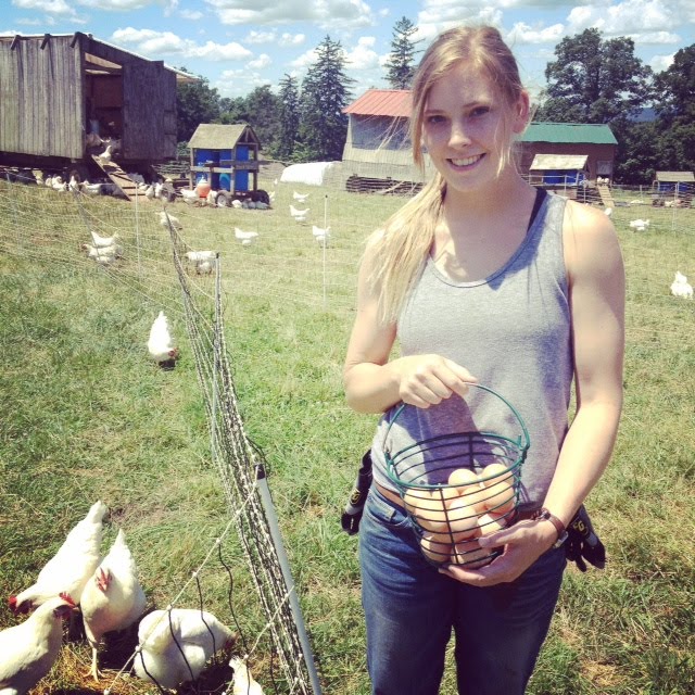 Megan, a lovely farmer’s apprentice—and a fellow University of Michigan alum (Go Blue!)—taught us about the chickens and told us to give them space or we’d get pecked!