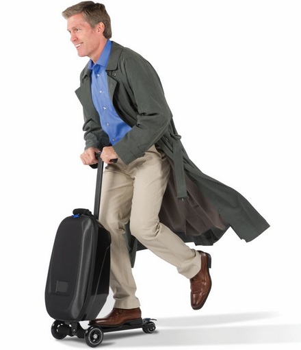 I saw someone riding on scooter luggage at the airport. They looked like they were having fun –a stark contrast to the rest of us harried travelers. Quite a stellar idea!