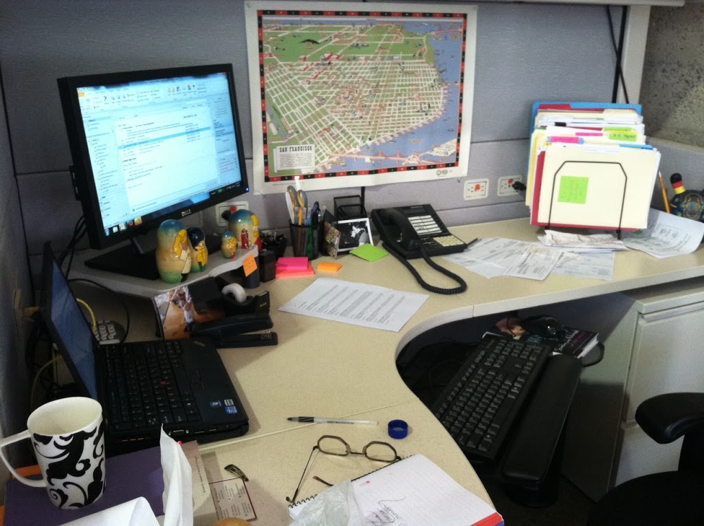 My first interview for the Babycenter job took place at the Newark Airport Marriott restaurant last November. Linda, who is now my boss, was on her way back to California. We hit it off, and I did more interviews, then came out to San Francisco in January with my husband Kermit and Ella, and they liked it (I think In-n-Out burger, and the perpetual sunshine, helped a lot). I asked Linda point-blank about family life and work, and she reassured me that it was a good place to work. Of course, we all check our email all the time, and get back online after our kids are asleep, but there’s none of that New York “your office is your real home” mentality.