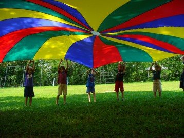 Laid-back birthday parties are the best, and this idea is genius: Just get a parachute! Little dudes can spin it around, sit underneath it and even get bounced on it (one at a time) while grown-ups hold the edges. (One of my earliest memories is when my kindergarten class did a parachute dance for our parents. We rocked it:)