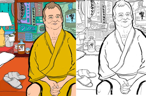 For cool kids (and grown-ups), this Bill Murray coloring book hit bookstores today. There are 24 different illustrations by artists that you get to color in. Ha, love that dude!