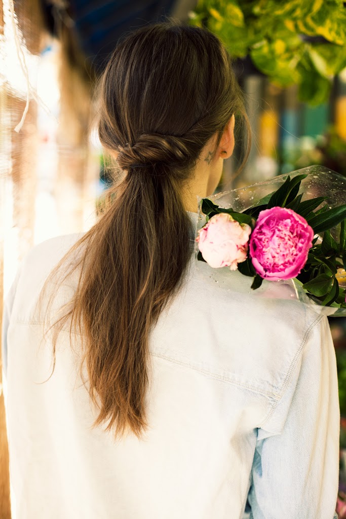 How often do you wear ponytails? There’s nothing cuter, but sometimes you want to mix it up. Our side ponytail was our most popular hair tutorial ever, so today we’d love to share another ponytail look. This twisted ponytail takes less than a minute, and is perfect for work, dates and weekend picnics. Below, my friend Caroline explains how to do it, and Jamie Beck took photos…