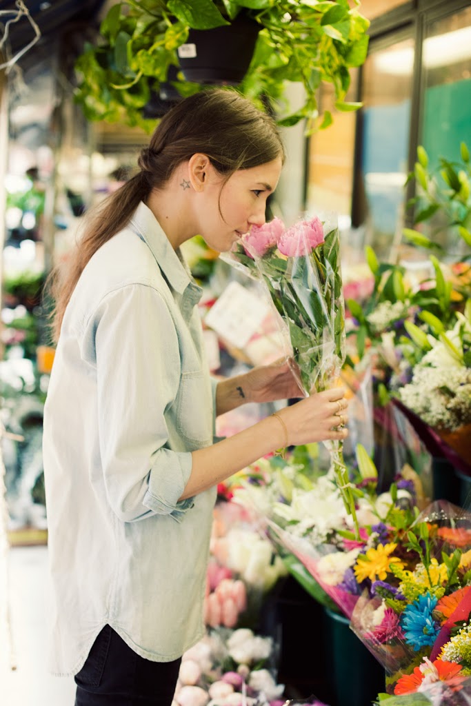 (Photos by Jamie Beck for Cup of Jo. In the step-by-step photos, Caroline is wearing an Alexander Wang Classic Tee. In the outdoor photos, Caroline is wearing this chambray shirt and black jeans. Caroline’s jewelry is from her own line, Brvtvs.)