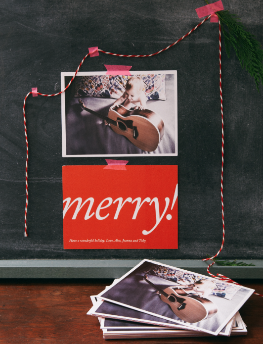 Will you be sending out holiday cards this year? Last year, we chose a photo of all of us, but this year we went with a photo of Toby playing guitar, partly because he looked cute and partly because we didn’t have a decent family photo:)