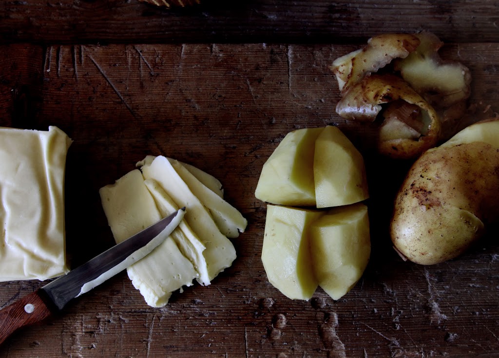 14 oz. Tomme de Laguiole cheese, finely sliced (or substitute a cheese like Lancashire/Cantal/Cheddar)