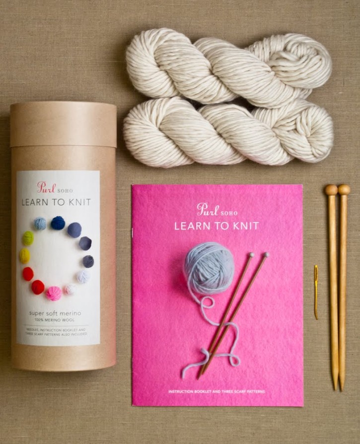 Learn-to-knit kit with everything she’ll need to knit her first 100% Merino wool scarf, $62.