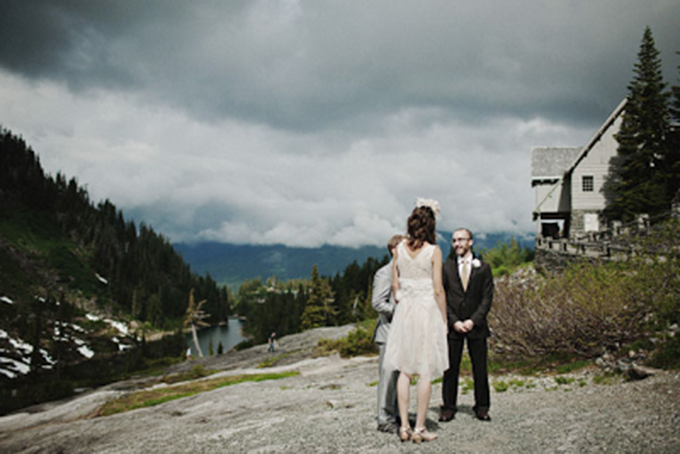 At their mountaintop wedding, Tera and Mike were married by a close friend, who just happened to be a magician. He even performed a card trick during the ceremony.
