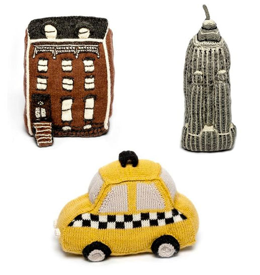 Oeuf just launched a collection of NYC plushes, including the Empire State Building, a yellow taxi and a Brooklyn brownstone. (Can you imagine a little one cuddling with a brownstone?! Ha, I love it.) The plushes would also look great on a grown-up sofa.