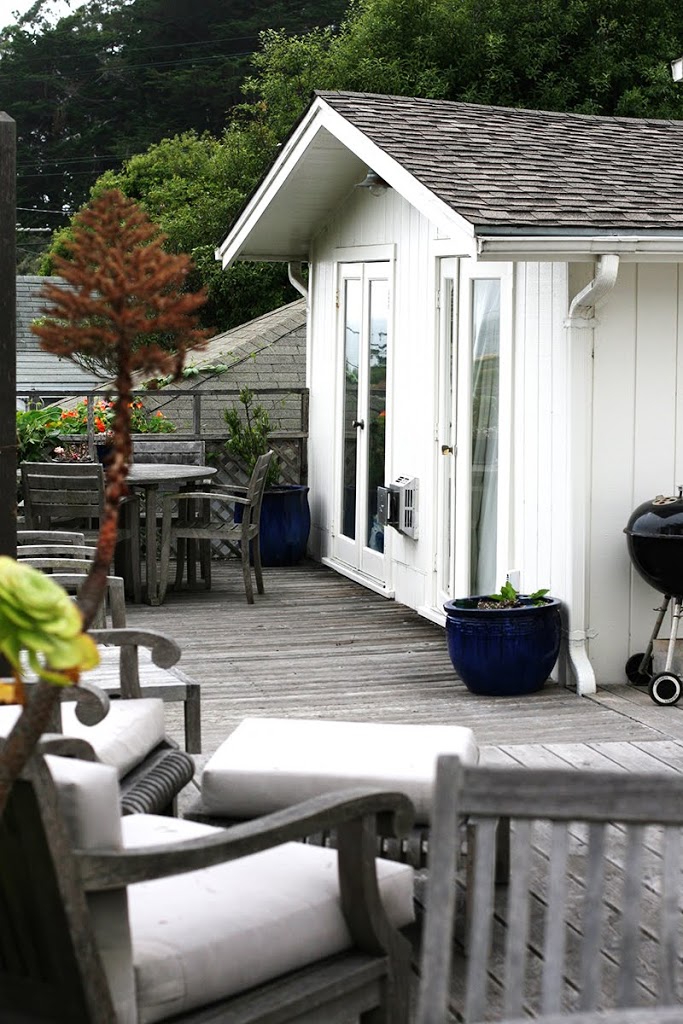 One time we rented these little cabins just two blocks from the beach. Each cabin had 1 or 2 bedrooms, a huge shared deck and sliding glass doors for a sweeping view of the ocean and Mt. Tam. They make perfect accommodations for multiple families traveling together.