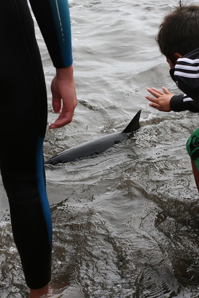 Last time we were there, the craziest thing happened. A baby white shark accidentally beached itself in shallow water. It was still alive and having a hard time getting back beyond the waves. Poor little guy!