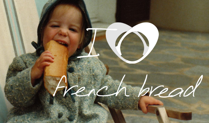Valentine’s Day is just two weeks away, so let’s talk about love. What are you loving these days? A person, a moment, a food…One of my lifelong loves is French bread (here’s me proving it, as a two-year-old), especially with stinky cheese or warm Nutella. Also, did you know you’re always supposed to tear French bread, since it’s actually considered odd to slice it?