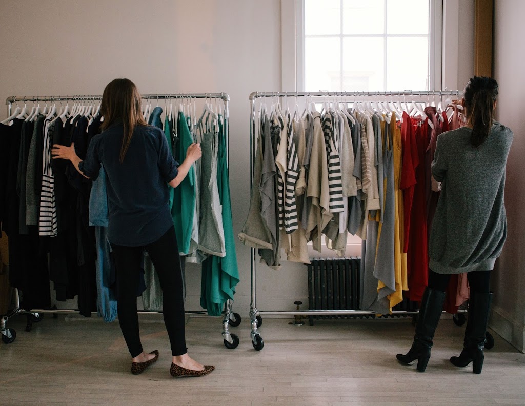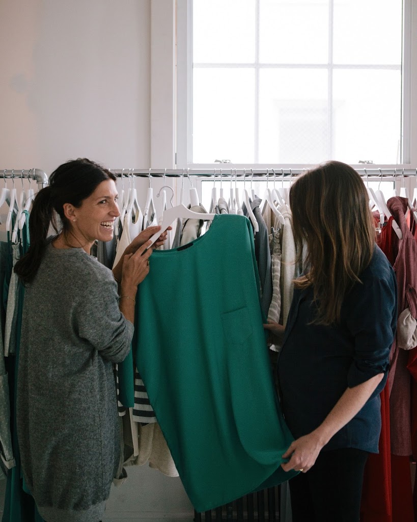 The whole point of HATCH is that you can wear the clothes before, during and after pregnancy—so we both tried on some pieces. Ariane wore the jumper, and I wore the dinner party dress.