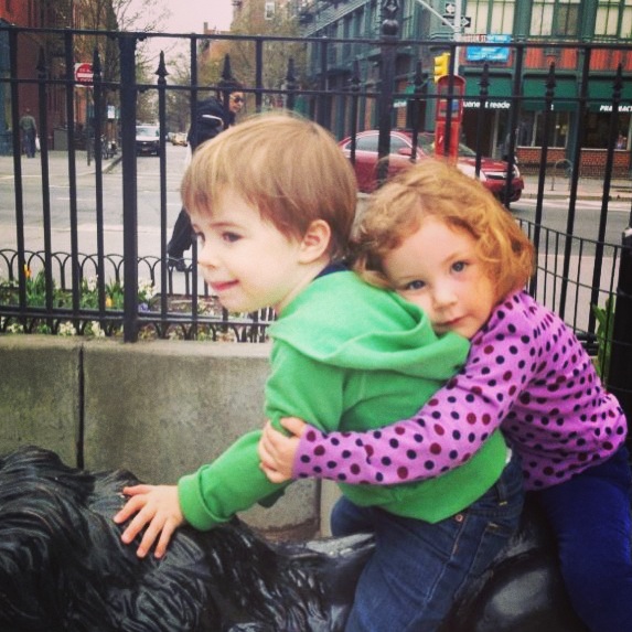 Yesterday Toby took his girlfriend for a ride on his motorcycle (aka a lion statue at the playground). These two kill me, they really are in love!