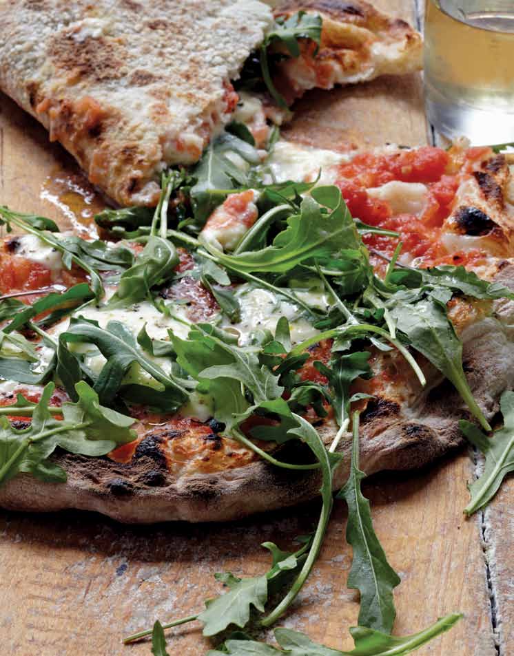 In Italian, stracciatella means shreds. As a cheese, it’s a soft form of mozzarella that melts very quickly, becoming molten almost instantly. In Italy it’s often used in soups. With pizza, you’ll find that stracciatella placed on the hot pie just of the oven turns the pizza into a masterpiece that looks like you slaved and worried over it—when in fact you surely didn’t. It’s quick and easy—and in my restaurant it is ordered so often I sometimes think it’s all the guys in the back are cooking.