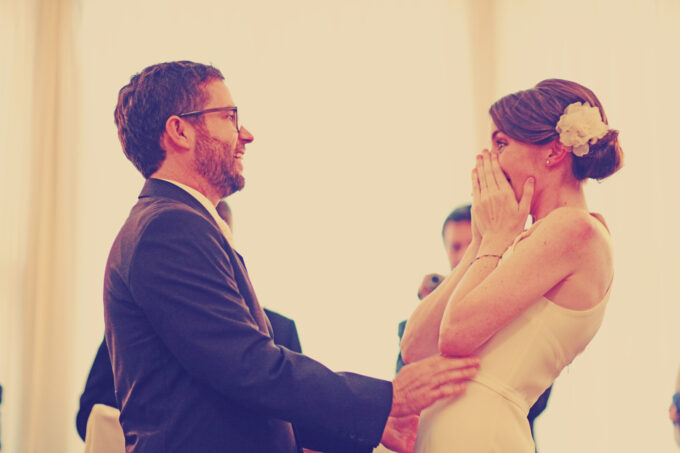 Plan my speech! Alex and I had decided not to give toasts, but halfway through dinner, I felt so giddy and excited that I leapt up and grabbed the microphone. Thus ensued ten minutes of rambling and blubbering. Looking back, it would have been so much nicer if I had written a coherent toast ahead of time, and afterward I kept thinking of things I wished I had said. Alex, of course, somehow stood up and gave the most beautiful speech off the cuff! (Here’s a fill-in-the-blank toast and nine couples’ funny toasting moments).
