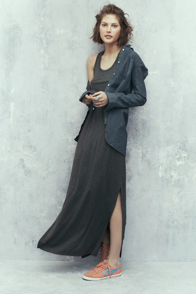 A grey tankdress with a slit to the knee.