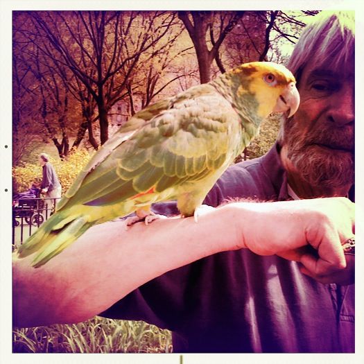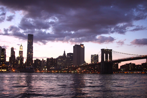 (Top and bottom photos of me by Shannen Norman for Cup of Jo. Central Park photo via Gothamist. Hudson River Greenway photo by Biking in Manhattan. Brooklyn Bridge nighttime photo by Hither & Thither. Little Red Lighthouse photo by the Bridge and Tunnel Club. Met rooftop photo by the Met. Photos of the green parrot and me on the Brooklyn Bridge by Alex)