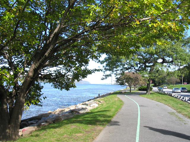 3. The Hudson River Greenway. You can ride this waterfront path all the way from Battery Park to the Little Red Lighthouse under the George Washington Bridge. There are lovely stops along the way: Battery Park City downtown has views of the Statue of Liberty and sailboats on the Hudson River; and you can stop for burgers and milkshakes at Shake Shack. Uptown, you can stop to read the paper or enjoy a picnic in Riverside Park overlooking the water (keep an eye out for a funny green parrot, who hangs out there with his owners and will sweetly ask, “You want some breakfast?”). In a few places—downtown, midtown and uptown—you can cool off with free kayaking. Here’s a map of the entire waterfront bike path around Manhattan. Our favorite 12-mile ride goes from Battery Park up to the George Washington Bridge and is almost completely flat, but you can create your own ride by starting and stopping wherever you’d like—it’s all beautiful!