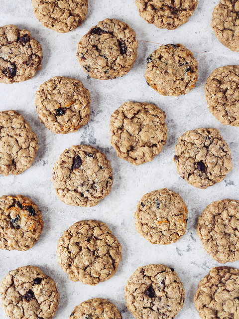 NOTE: These cookies can easily be made gluten-free by substituting a gluten-free flour blend or the unbleached flour. If you’re not into the whole vegan thing, you can replace the non-dairy butter with real butter (better yet, ghee) and the flax egg with a large egg. I highly recommend trying to get your hands on muscovado sugar because even though brown sugar is an acceptable substitute, it’s just not the same. To change things up a bit, toss in a few spoonfuls of good quality, chopped dark chocolate and cacao nibs. Or zest from an orange (or two) and a handful of dried cranberries.