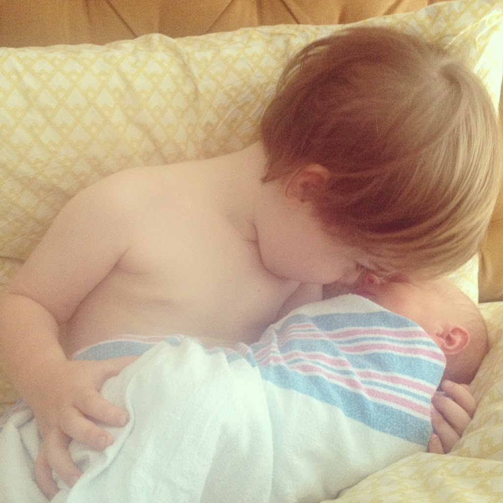 Thank you again for all the sweet notes about the new baby! I’d love to share a few photos of Toby meeting his brother for the first time…