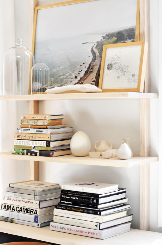 (Reading nook photo from Martha Stewart Living and leaning art photo by Victoria)