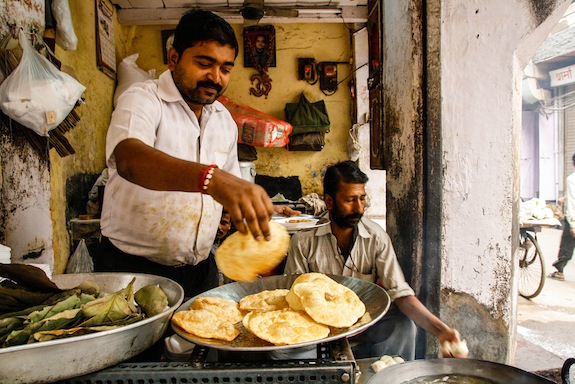 My favorite Indian food is chole bhature, a chick-pea gravy served with a deep-fried piece of dough. It’s best enjoyed when we’re out walking as a family at 6am—things are still quiet, the traffic isn’t insane yet and the heat is bearable—and we find a guy with a clean, open stand. So damn good.