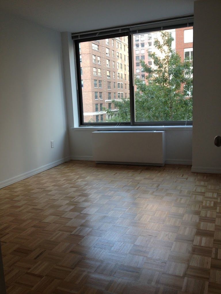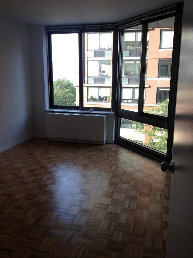 Here’s the master bedroom, which also has water views to the left. (Thankfully the room feels bigger than it looks in this teeny photo.) We also look onto the building across from us, which feels straight out of Rear Window.