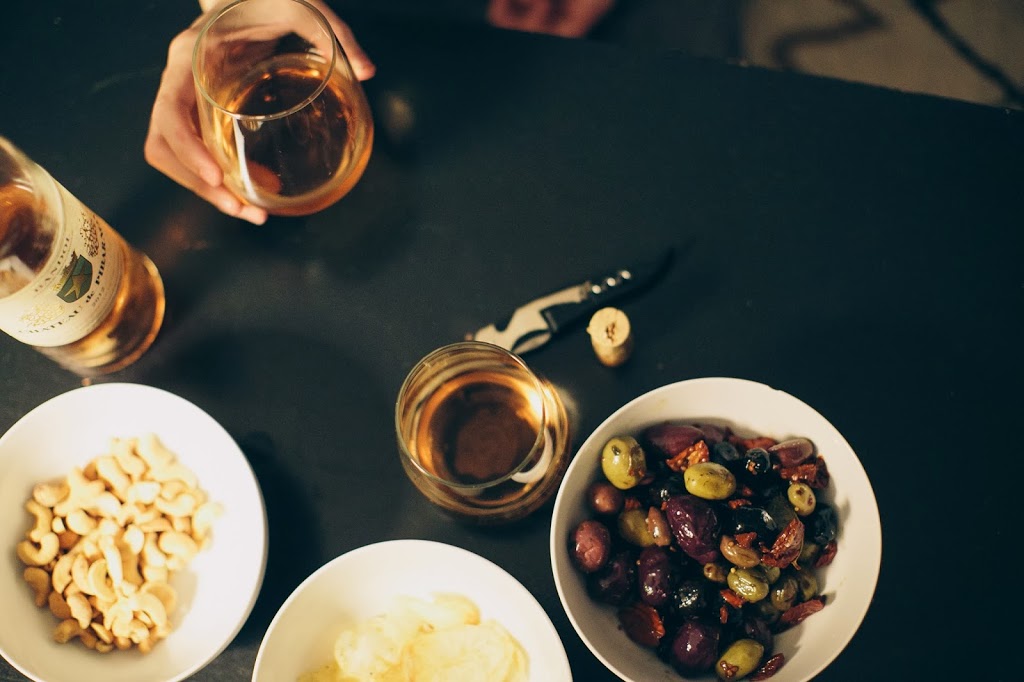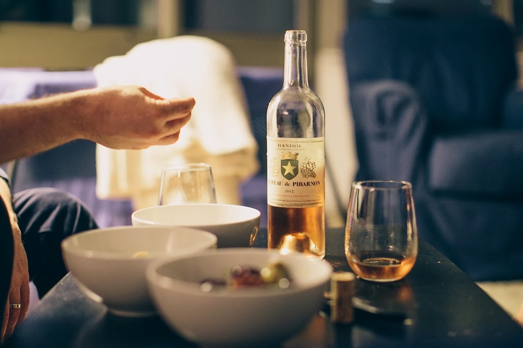 So, after both boys were in bed, we cracked a bottle of rose and put out bowls of nuts, olives and kettle chips…