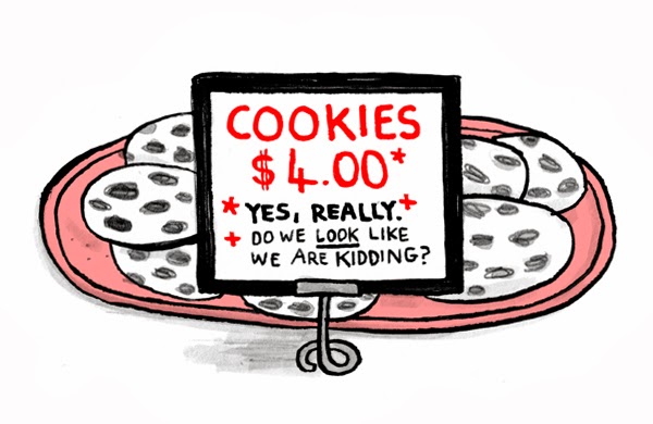 Random things are psychotically expensive. For example, one chocolate-chip cookie will run you $6. One drop-in children’s music class is $30. And I ordered a lemonade at a cafe this summer and when the check came it was $10. $10!