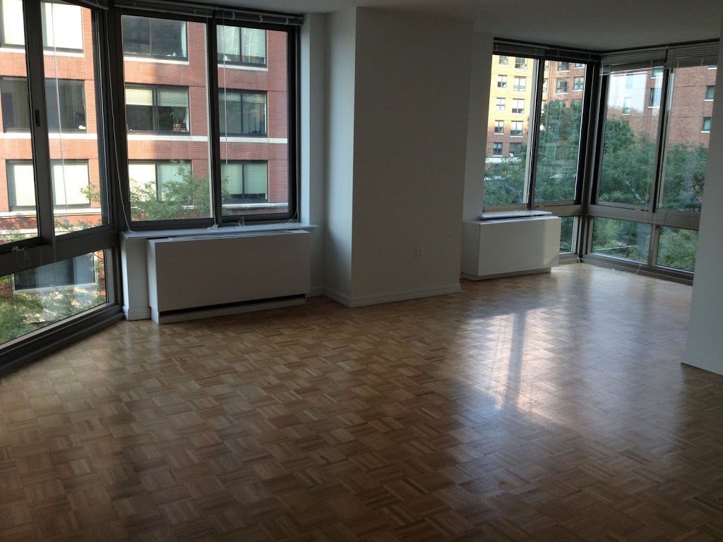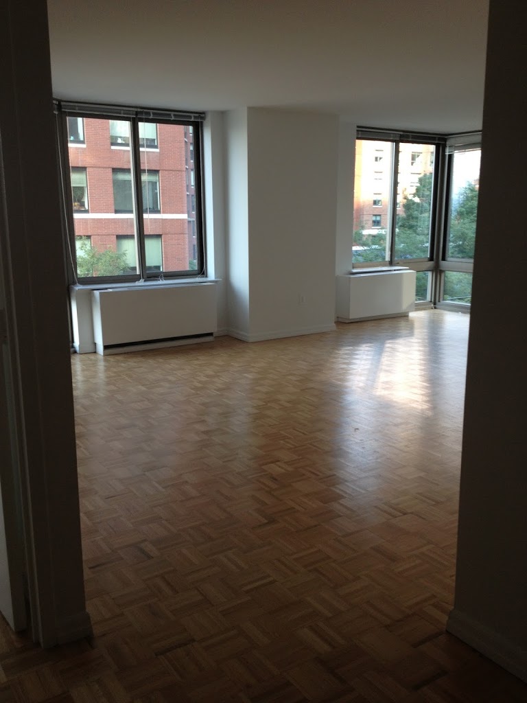 Here are the photos of the empty apartment, when we moved in. (You can see the floor plan here, if you’d like.) The living room is nice and bright, and the kitchen and dining nook are off to the right.
