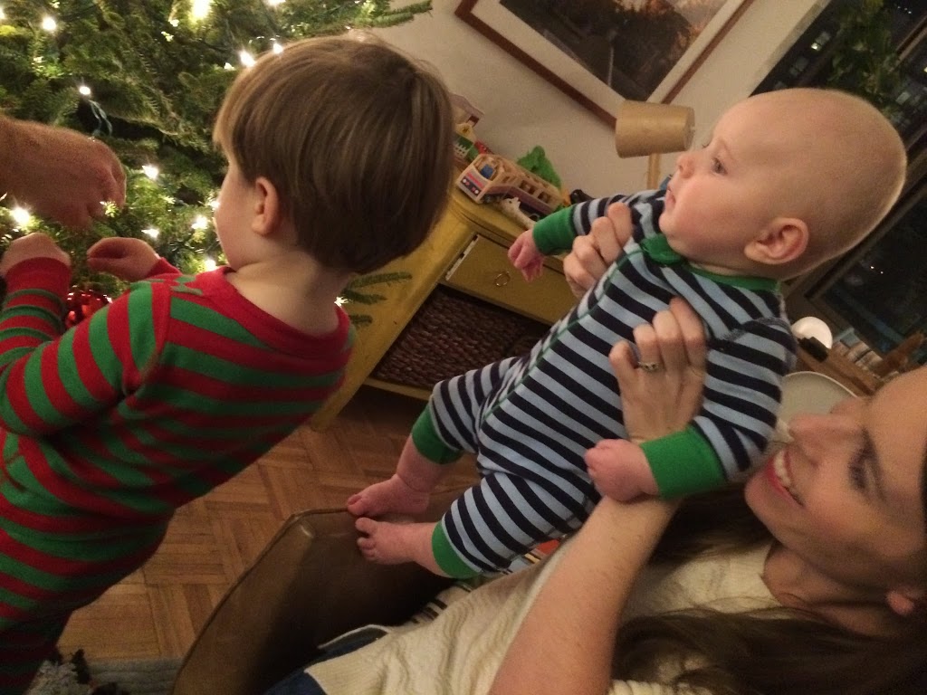 So one night last week, after the boys were in bed, Alex snuck out and got a tree from a stand down our block. It was the perfect Goldilocks size: Not too big and not too little. When Toby woke up the next morning, we told him we had a surprise in the living room, and he walked out slowly and completely awestruck. “A tree,” he whispered, eyes big as saucers.