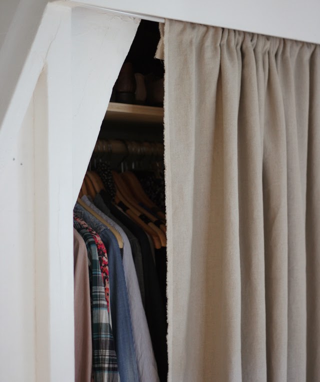 3. Remove closet doors. Closet doors that swing into a room take up considerable floor space. Take the doors off and ask your landlord to store them. Then hang a simple curtain from a suspension rod to hide the inside of your closet instead.