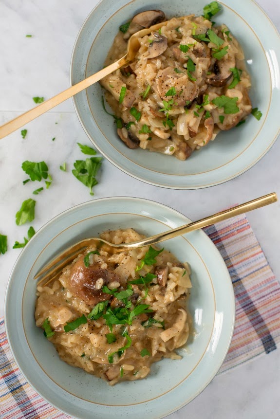 When I was 15, I had a great Italian teacher—and while I don’t remember complicated conjugations, I will never forget the risotto he taught us to make. He said it was the way his mama made it and it tasted incredibly good. I’ve been making his recipe ever since—often as a quick and comforting dinner, but also when people come over, or when I need something to bring to a potluck. It’s a one-pot meal and comes together really easily. You don’t even have to stir it as much as you might think!
