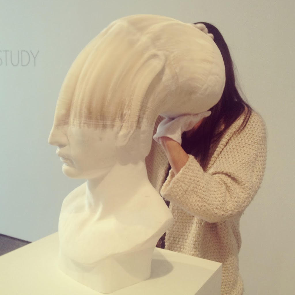 This past weekend, my aunt, Toby and I walked up to the Chelsea art galleries to see these busts by Chinese artist Li Hongbo. Although his classical statues look as if they’re made from marble, they’re actually carved from thousands of sheets of paper that was glued together. So, if you pick them up, the busts will stretch and twist like a slinky!