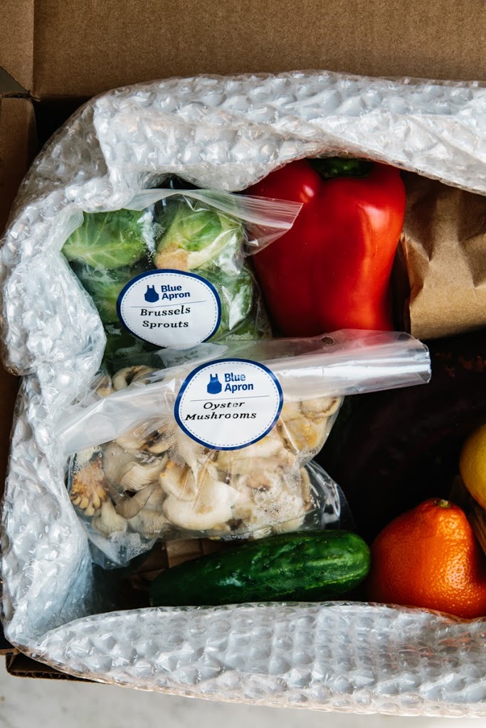* Every week, Blue Apron delivers a box with ingredients for three meals.