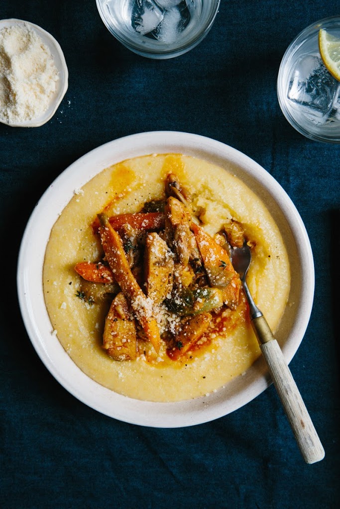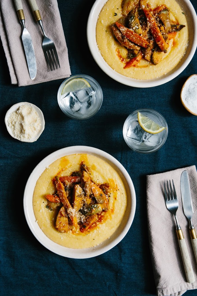 * Braised Carrots, Mushrooms & Brussels Sprouts with Creamy Polenta (you can see the ingredients above)