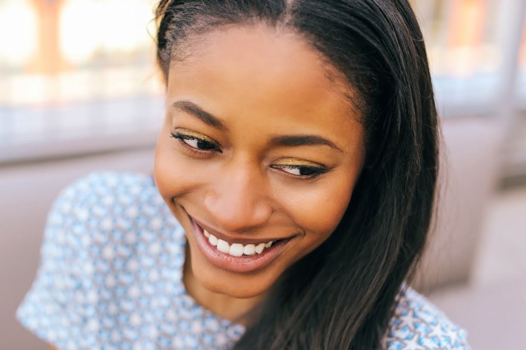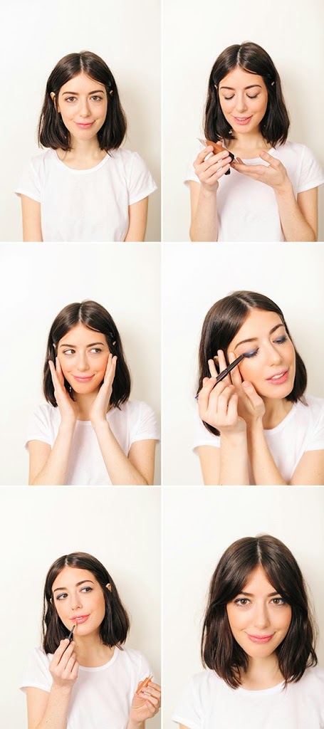3-4. To look extra radiant—as if your face is lit from within—apply a highlighting bronzer right above your cheekbones, sweeping it out toward your hairline. (The highlighter looks so pretty when it catches the light!)