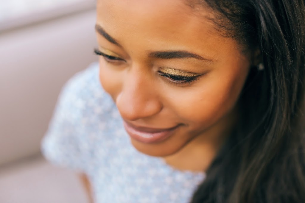 5. Using a short-haired brush, apply gold cream eyeshadow (this cream shadow was wearable even for daytime) to the center of the lid. Then buff outward, until your entire eyelid is covered.