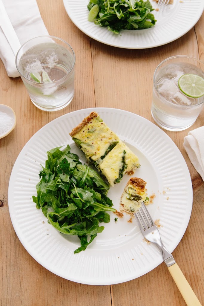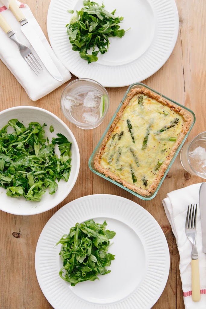 First off, we made this beautiful spring tart with asparagus, spring onion and gruyere, along with an arugula salad. It’s the kind of thing we would never typically venture to make—I mean, you make the crust from scratch—but it was absolutely delicious to try, and fun to learn how quickly you can pull something like this off.