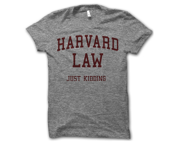 Maybe this comment is obnoxious – but I just graduated from Harvard Law (really) and I think it would be really funny to wear that shirt.