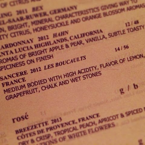 Alex ordered a Negroni, while I, as always, chose a glass of white wine. Side note: I LOVE when bars describe their wines (especially with descriptors like “chalk and wet stones”).