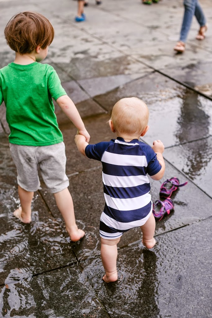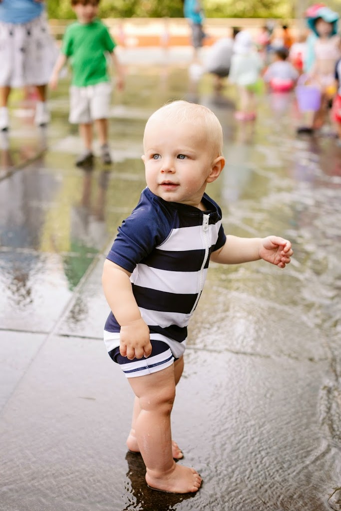 The boys wore Old Navy basics, which were cute yet sturdy enough for running and splashing around. (Toby’s shorts were only $6!) Anton wore one of their little surf suits, which kept him covered up in the hot sun.