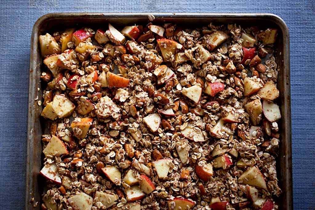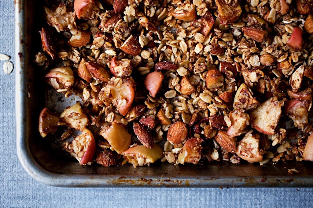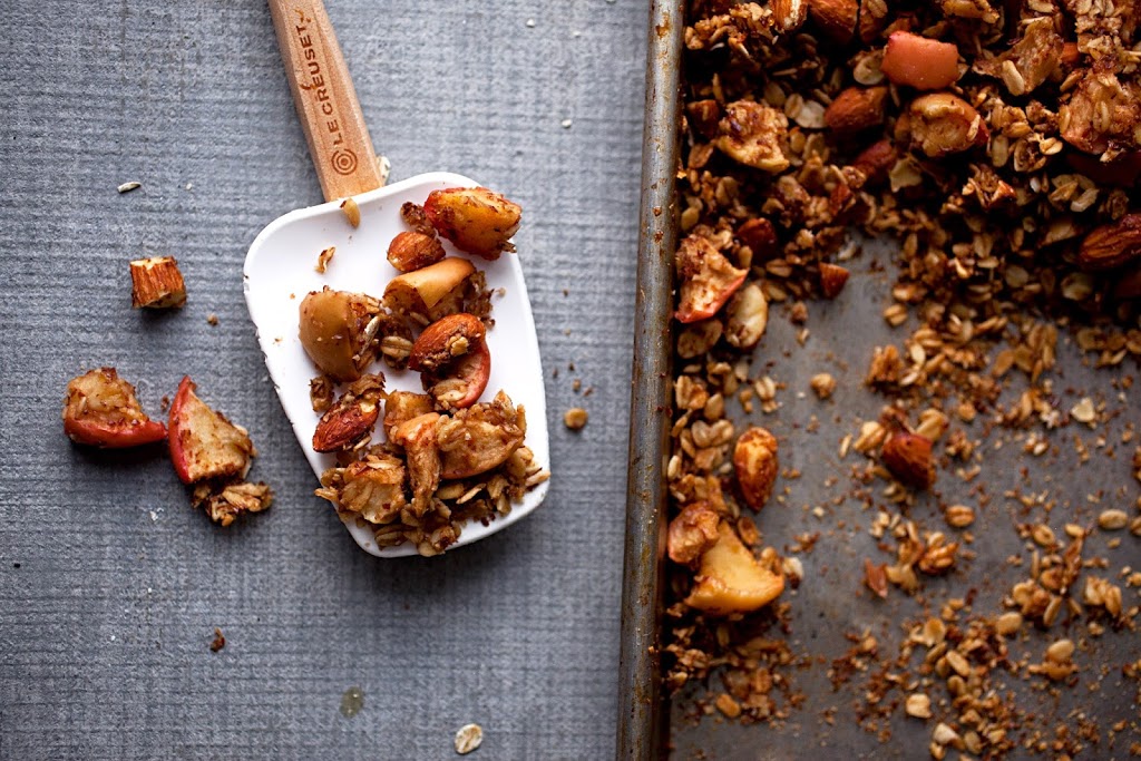 This month, we’re savoring the last days of summer and gearing up for fall (can you believe it?) with a collection of delicious apple recipes. First up, Elisabeth from Food Mouth shares her recipe for maple apple granola, perfect for breakfasts, after-school snacks or sprinkled over ice cream. Here’s how to make it…