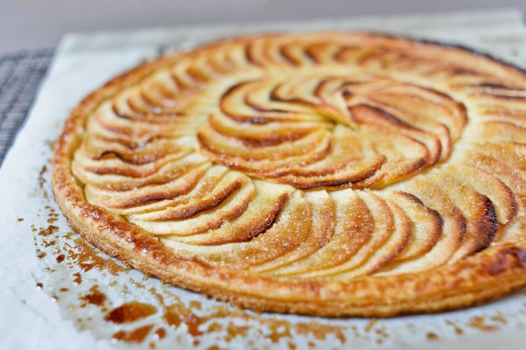 I would argue that the most elegant kind of apple tart made in France is the tarte fine, a tart that is assembled on a thin disk of puff pastry, topped with a layer of thinly sliced apples. The keyword here is thin, as this format produces a unique sensation when you eat each bite, all crackly crust and soft apples.